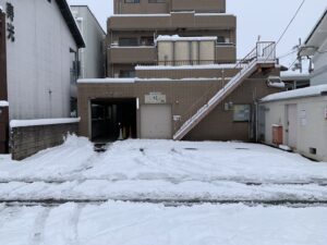 こちらでは、雪がしっかり振り、お店の前の雪かきが必要でした。