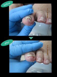 両サイド皮膚に食い込んだ爪をリフトアップして固定しています。