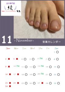 かかとケア、角質ケア、今のうちに巻き爪補正をしておきたい方、次の夏に向けて肥厚変形爪をの再生ケアをしておきたい方、お待ちしています。